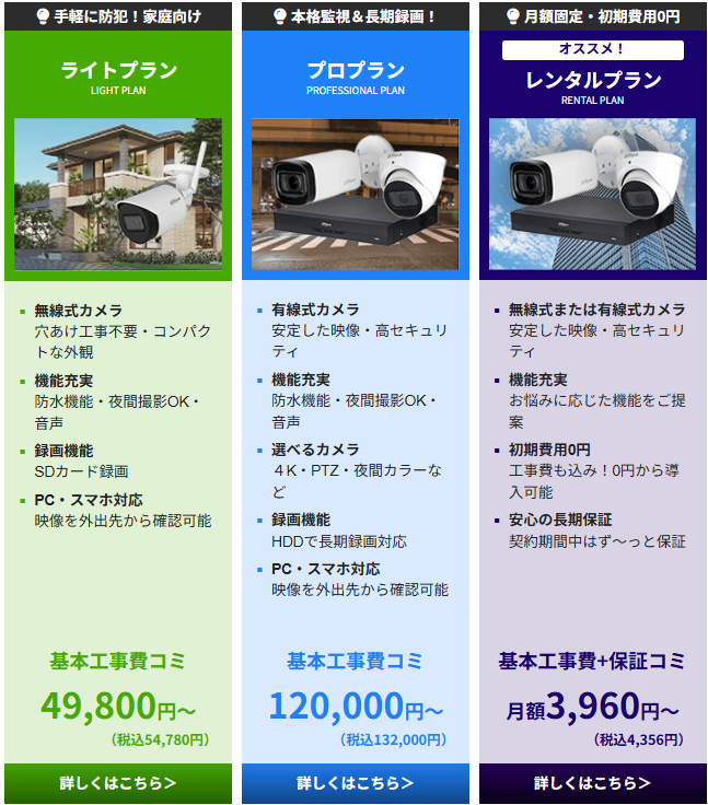 初めての防犯カメラ導入に、いちばん気軽なプラン、ぜひチェックしてみてください。